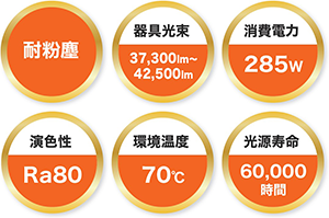 LEDモジュール寿命(設計値):60,000時間 / 光源光束:45,200lm
