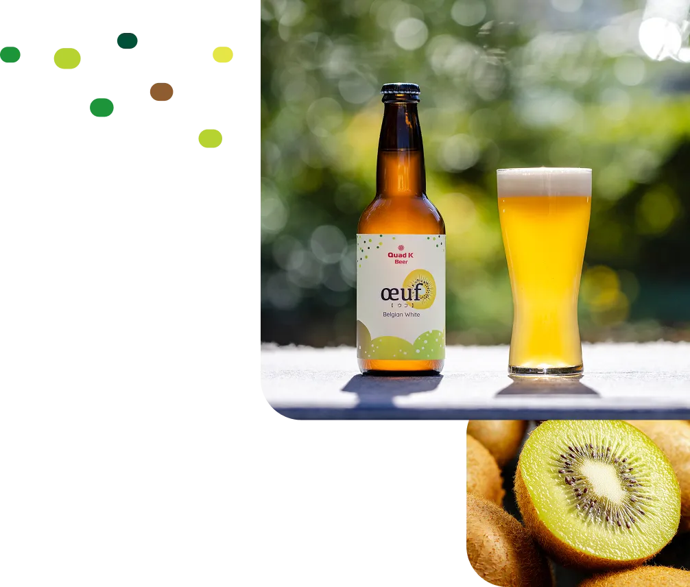 ベルジャン酵母特有の華やかな香りと麦芽のやさしい甘みにキウイのほのかな余韻が広がります。